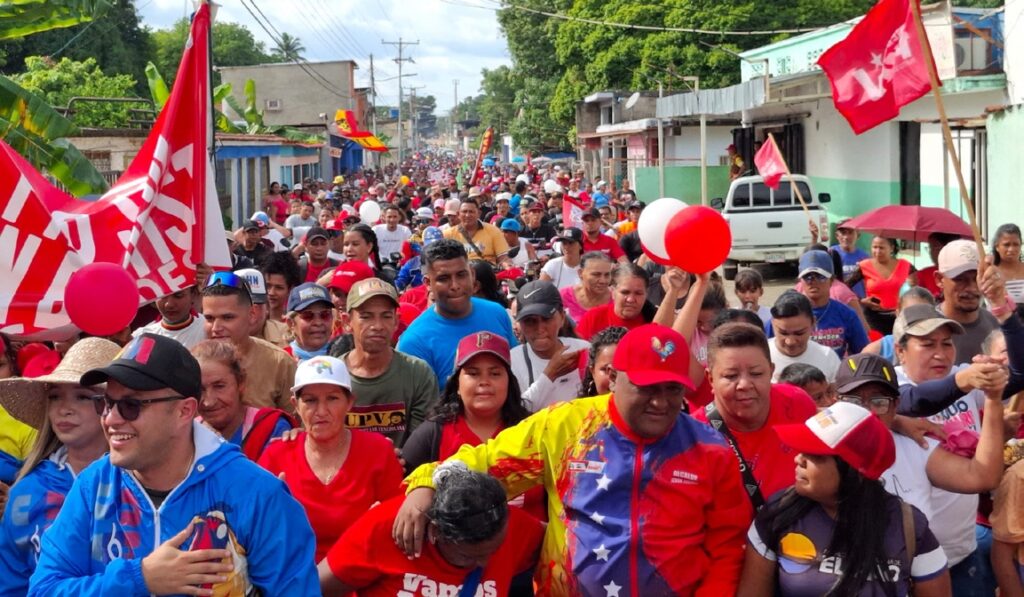 Juárez recorrió con la marea roja las vias principales de El Pao, hasta llegar a la tarima, dónde dirigió su mensaje a la militancia chavista.