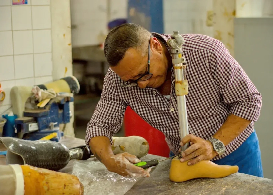–Yo aquí trabajo prótesis a nivel superior y a nivel inferior. Es decir, de piernas y brazos. En estos momentos estoy fabricando solamente prótesis de piernas. Las hay por debajo de la rodilla y por arriba de la rodilla, y otra que es desarticulada, o de cadera. Hago también plantillas ortopédicas. Y férulas de mano y para pies. Hay infinidades de férulas. Hay otro tipo de aparatos que nosotros usamos aquí para las personas parapléjicas. A esas personas que no tienen funcionalidad de la cintura para abajo, se le colocan aparatos para que se paren. Tengo 15 años en este trabajo.