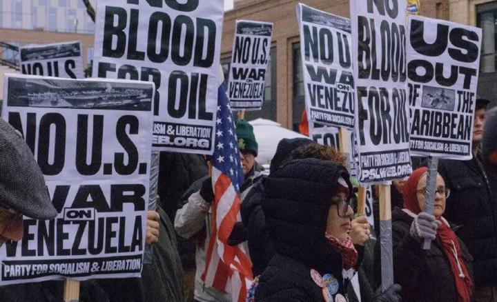 En la capital norteamericana, en Washington, los manifestantes se pronunciaron en contra de que el Gobierno de Trump emprenda una guerra en Venezuela, de cara al despliegue militar que Washington ha emprendido en el Caribe bajo el argumento de supuestamente combatir el tráfico de drogas.