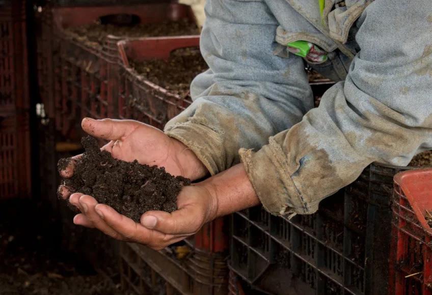 El verdadero cambio llegó por necesidad práctica. En 2006 tuvo que vender lombrices y las entregó en cestas. Decidió dejar el pie de cría allí durante la cosecha de canteros —pasaron casi dos meses— y al regresar encontró una sorpresa: el humus de las cestas tenía mejor textura, color y porosidad que el de los canteros. Las lombrices crecían más grandes y robustas.